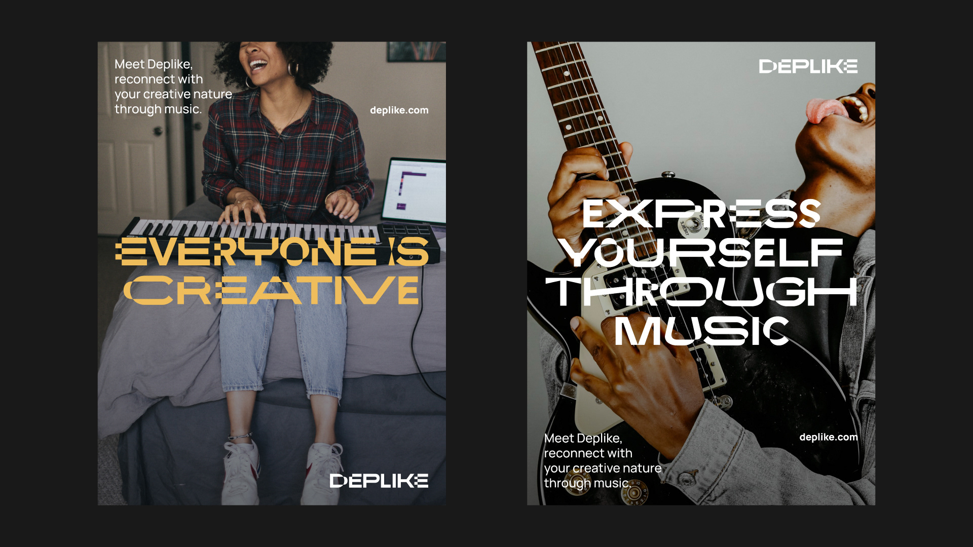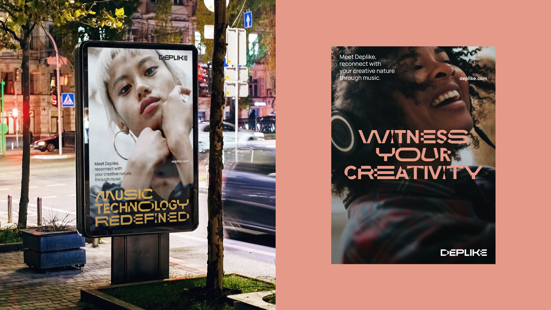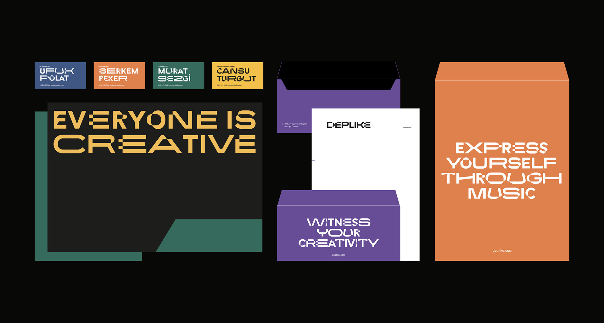 Deplike’s new visual identity system is centered around a custom, kinetic variable font. Echoing the multi-faceted nature of creative expression, all characters within this font move along multiple axes in many directions. The brand logo is a champion of this dynamic typography as each letter showcases a different way the variable font moves. This dynamic font lets Deplike’s brand identity to interact with what they do best, music.