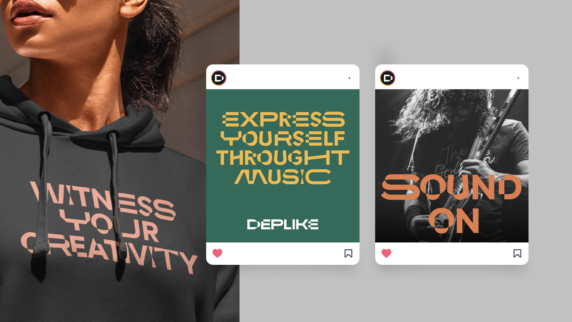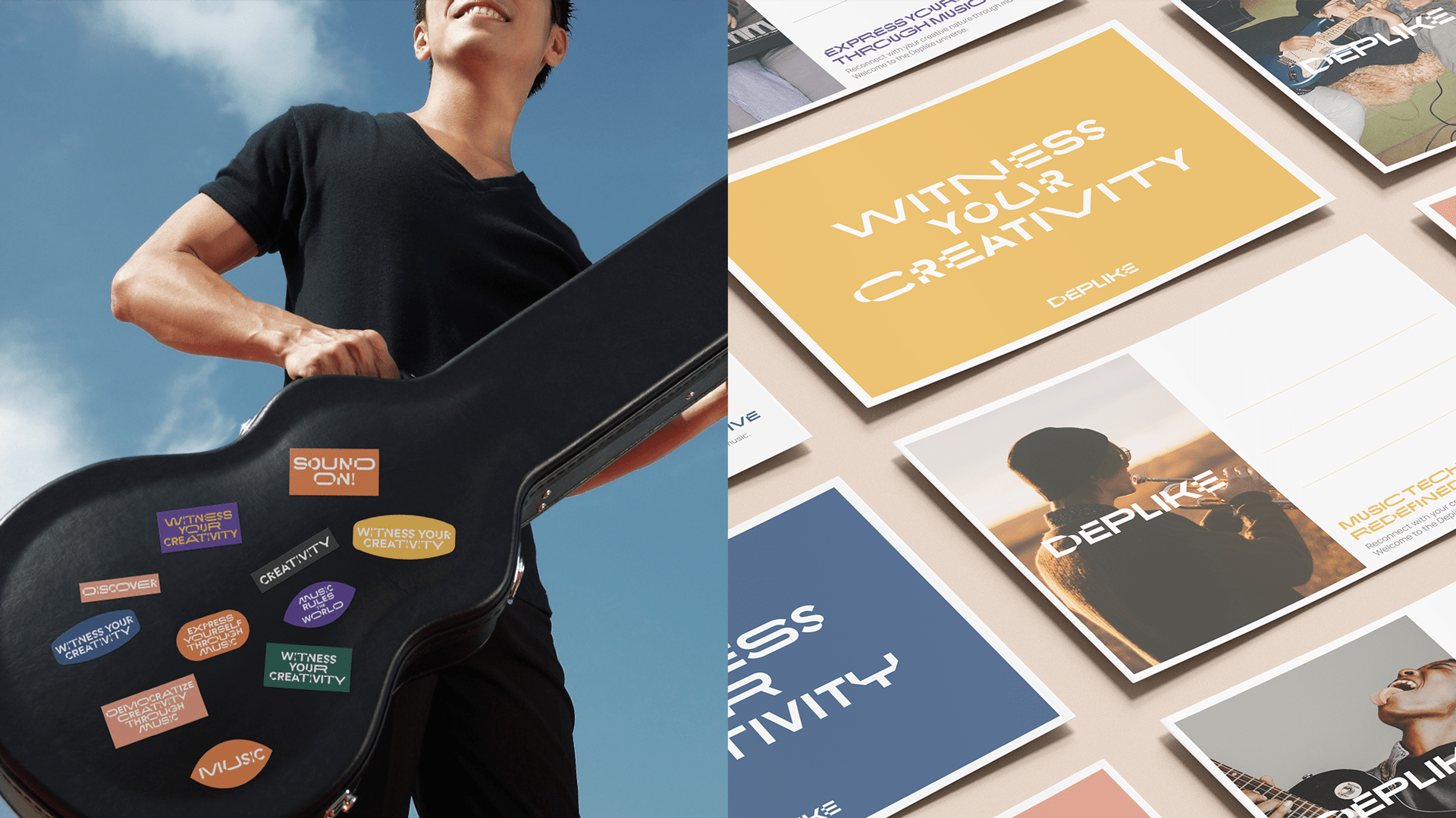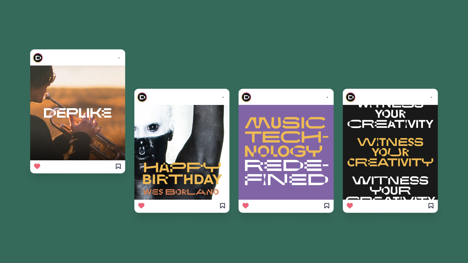 Deplike’s new visual identity system is centered around a custom, kinetic variable font. Echoing the multi-faceted nature of creative expression, all characters within this font move along multiple axes in many directions. The brand logo is a champion of this dynamic typography as each letter showcases a different way the variable font moves. This dynamic font lets Deplike’s brand identity to interact with what they do best, music.